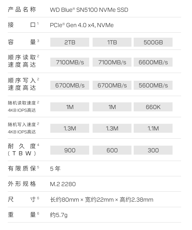 闪迪蓝盘WD Blue SN5100评测:2TB容量配7.3GB/s极速表现