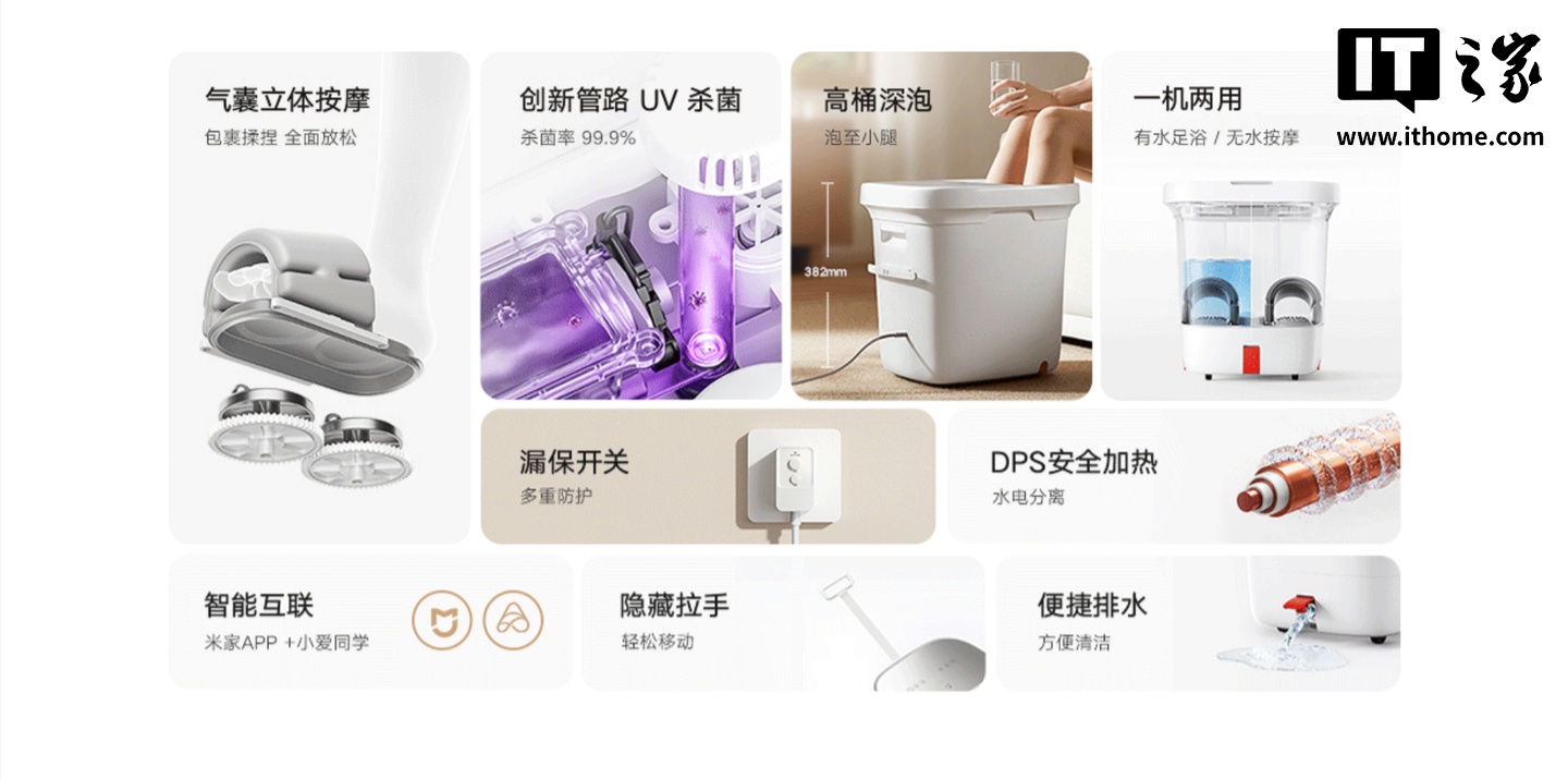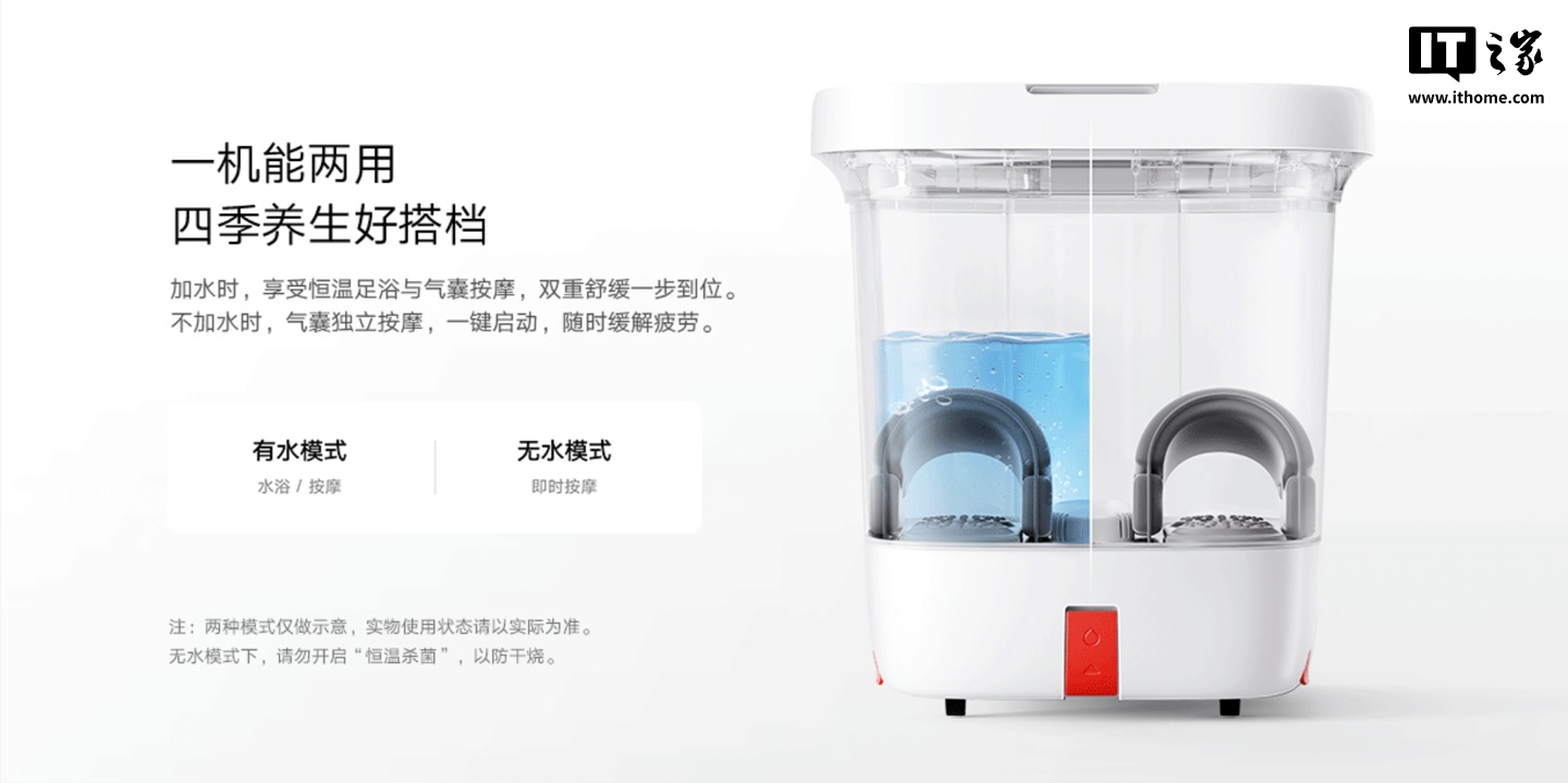 小米米家智能气囊足浴器799元:支持水浴按摩双模式,小爱同学语音操控