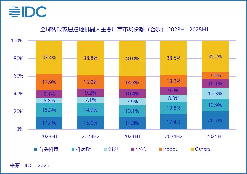 全球扫地机器人市场的权力交接,在2025年底至2026年初完成了一次极具标志性的闭环。 一边,是曾经扫地机器人巨头Roomba母公司iRobot申请破产保护,走向被中国供应链企业接盘的终局;另一边,更引人注目的变化发生了。根据2026年IDC最新发布的《全球智能家居设备市场追踪报告》,石头科技在20