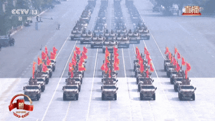 据东风汽车介绍,在空中护旗梯队和徒步方队通过广场之后,东风猛士军车载着战旗方队迎面驶来。战旗方队代表的是浴血于抗日烽火的功勋荣誉,由所在单位官兵擎旗受阅,东风猛士军车以“排头兵”的角色在共和国阅兵中亮相。