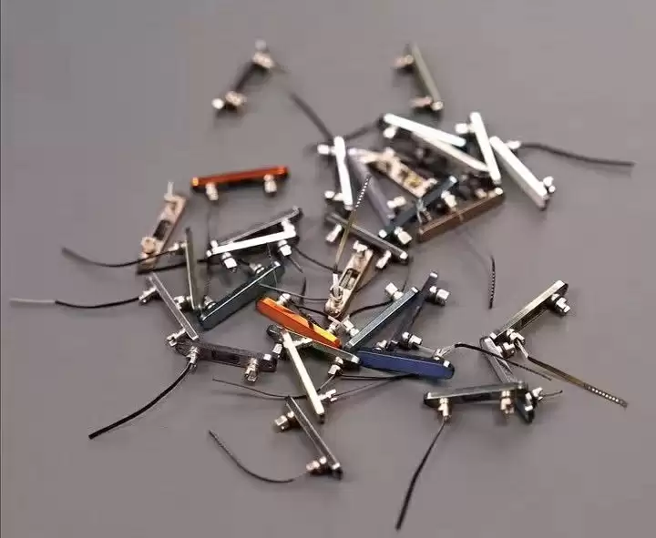 图像中较为清晰的一张显示了四种颜色的相机控制按钮组件,而另一张则呈现了一堆组件,其中可能包含 2 个橙色的按钮。