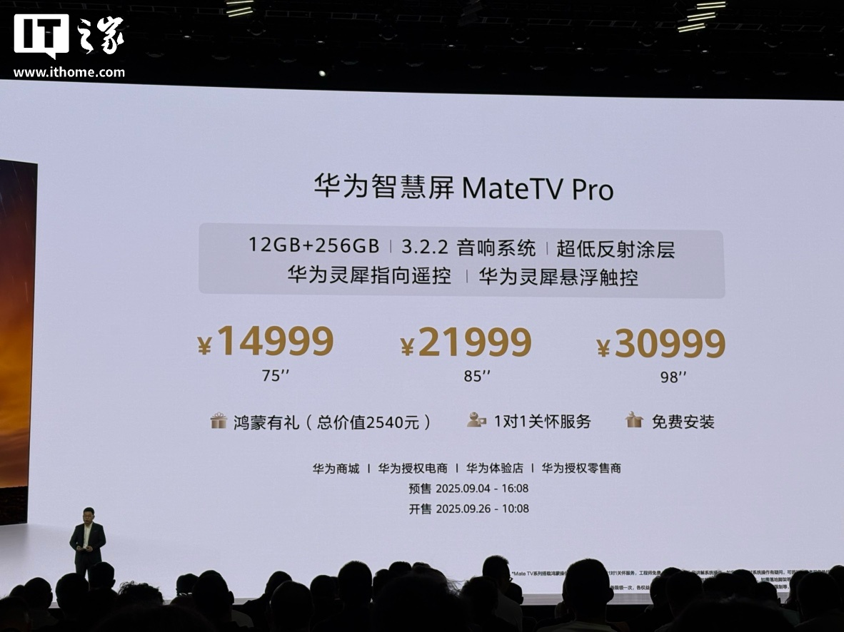 9 月 4 日消息,2025 年 9 月 4 日,在华为 Mate XTs 非凡大师及全场景新品发布会上,华为首款 MateTV 产品正式发布。目前已经开启预售,售价 8999 元起,将于 9 月 26 日正式开售。
