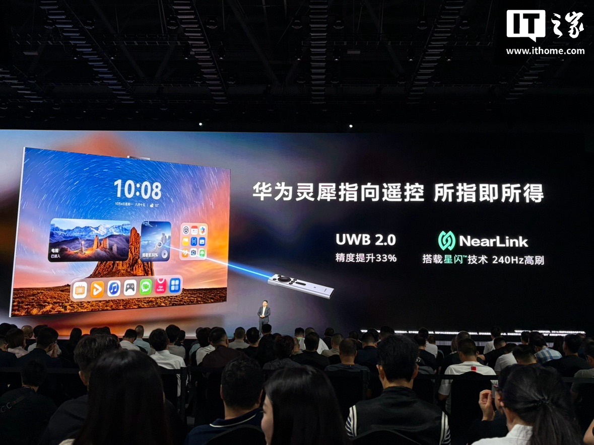 交互上,华为首创灵犀悬浮触控,通过 328 个手指检测传感器捕捉手指运动轨迹,结合星闪极速传输技术,支持多指独立运动识别,可完成滑动切换页面、缩放图片等操作。全新的华为灵犀手写套装,支持即插即用,实现全局批注与扫码分享,适配家庭教育、儿童涂鸦场景。华为灵犀指向遥控 2 也升级 UWB 软硬件,天线优化后指向精度提升 56%,星闪通信使光标帧率达 240Hz(行业平均 60Hz)。