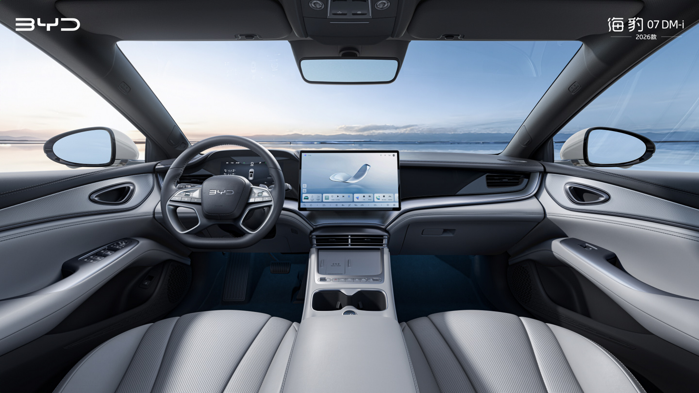 9 月 4 日消息,比亚迪今日宣布 2026 款海豹 07 DM-i 现已到店,首搭比亚迪精品主题。该车已经在 8 月 29 日成都车展亮相,同时公布了官方内饰图。