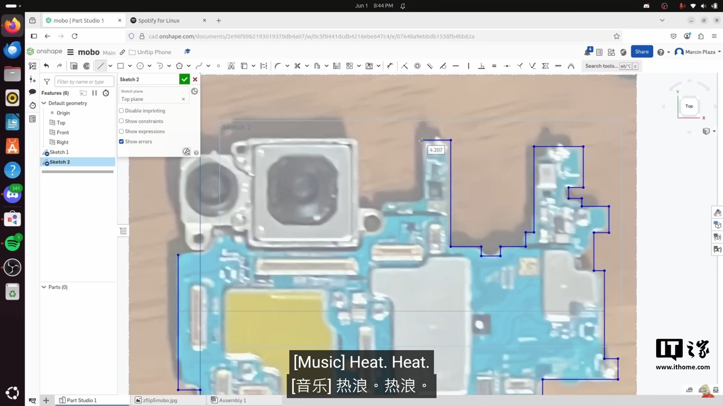 随后博主开始动手,他最开始先将手机完全拆开,舍弃原机下半部分的外壳、内屏,并从网上买到黑莓 Q10 手机的键盘用作移植,用 3D 打印制作了全新外壳,但他最初设计外壳时并未考虑好公差等因素,导致键盘装上后公差过大、“滑轨”无法顺利开合。