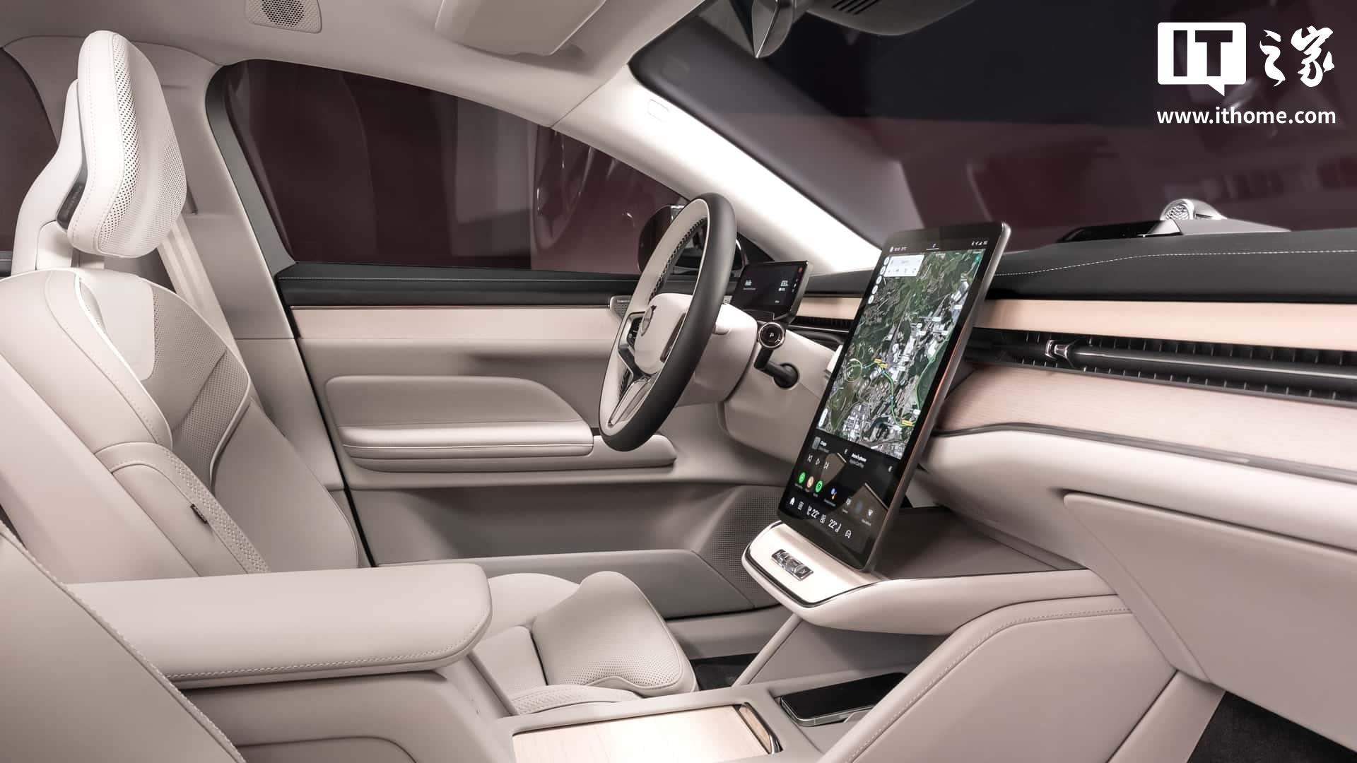 新车内饰配备了 14.5 英寸的竖向中控显示屏,可几乎掌控所有车内功能;配备四区空调和 25 个扬声器的宝华韦健音响系统。车内几乎没有物理按钮,除了方向盘上的几个按钮和窗户控制开关,完全实现数字化控制。
