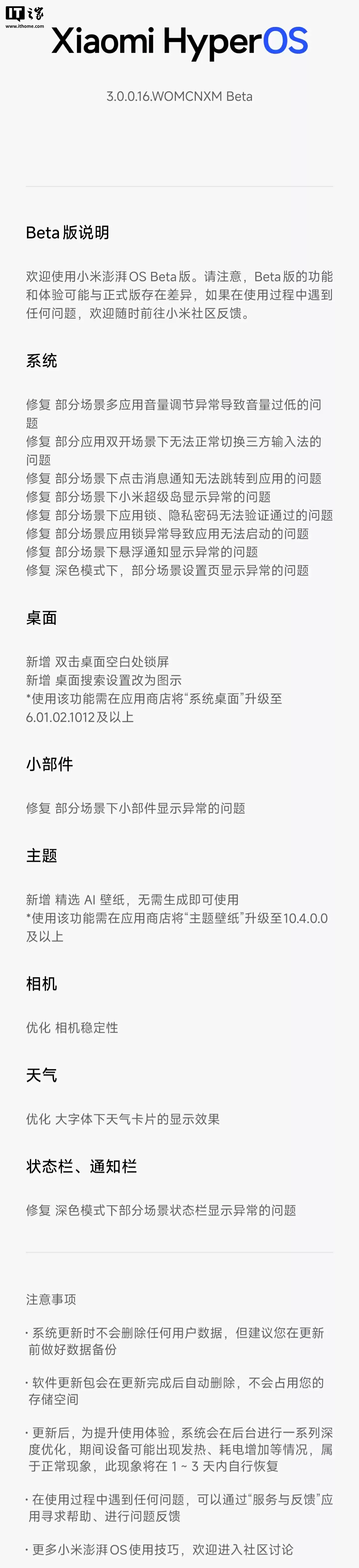 《小米首批升级澎湃 OS 3 Beta 机型推送“3.0.0.24”版本更新,修复问题、优化稳定性》