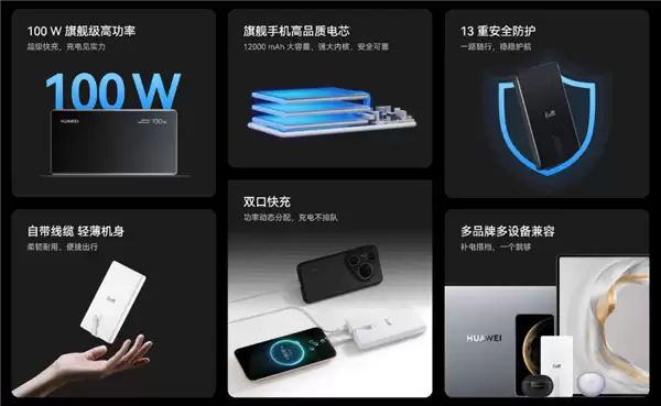 9月4日,华为在Mate XTs非凡大师及全场景新品发布会上,正式推出全新一代充电宝产品——华为自带线全能充电移动电源100W 12000,电池容量达12000mAh。这款新品不仅在充电功率上实现大幅提升,从上一代的66W升级至100W,更采用双口快充设计,满足用户多设备充电需求。