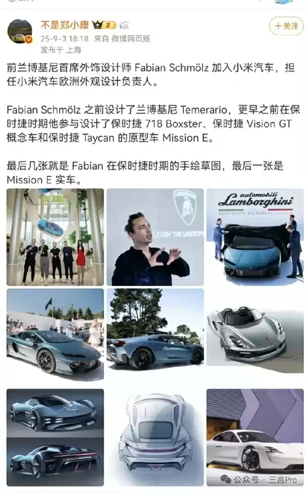 小米汽车再添猛将!雷军招募兰博基尼首席外饰设计师