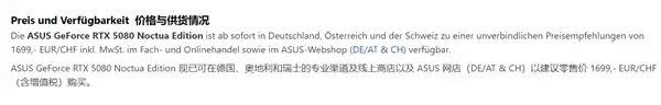 9月4日消息,华硕与猫头鹰合作推出的RTX 5080 Noctua Edition显卡已经在德国、奥地利和瑞士上市,官方定价为1699欧元。