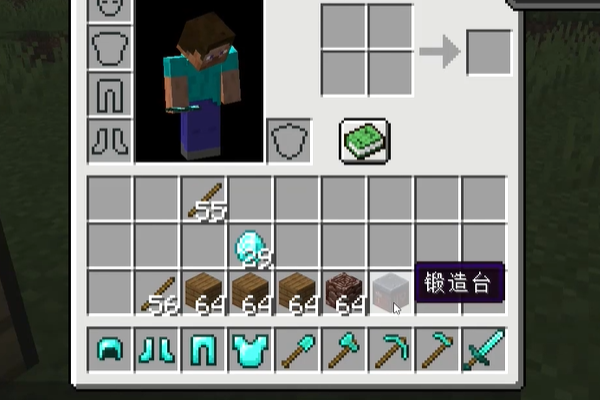 1、首先确保自己已经获得了钻石套全套,下界合金锭,以及锻造台。