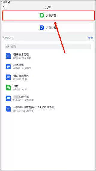 6、最后选择【共享屏幕】选项,即可完成屏幕共享设置。