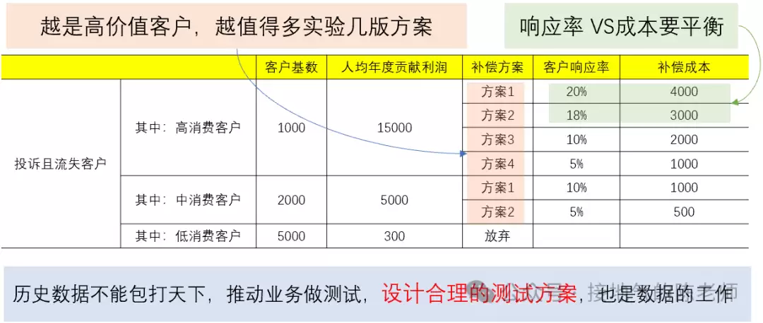 看到:“我司出现问题”,很有可能你会直观的想到一条对策:“给客户赔钱!”所有涉及价格/补贴/利润的方案,都要做数据测算,避免盲目给优惠导致亏损。