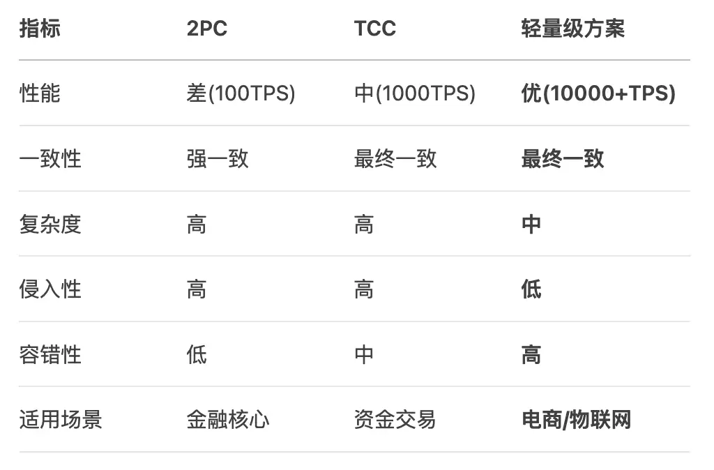 分布式事务没有银弹,轻量级方案在保证可用性的前提下,通过最终一致性实现业务需求的平衡,是互联网高并发场景的最佳选择。
