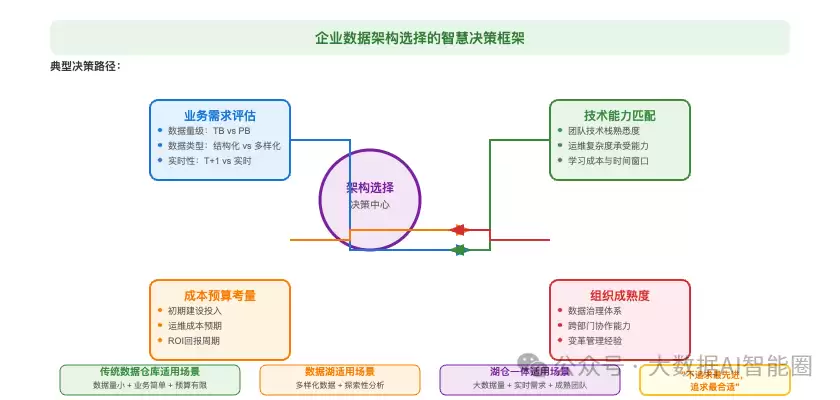 企业在做数据架构决策时,需要考虑的不仅仅是技术先进性,更要考虑组织能力、业务需求、成本预算等多个维度。最好的架构,是能够在当前约束条件下,最大化业务价值的架构。