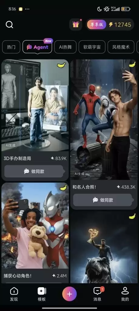 作为国内首批接入Nano Banana的AI视频生成平台,拍我AI国内版同步推出更多趣味模板,包括3D手办制造局、和名人合照、捕获心动角色、骑龙高手等,让普通用户也能轻松上手,制作精致、有趣的短视频作品,以及更进一步制作出自己喜爱的游戏画面!目前拍我AI网页端和移动端APP均可同步体验。