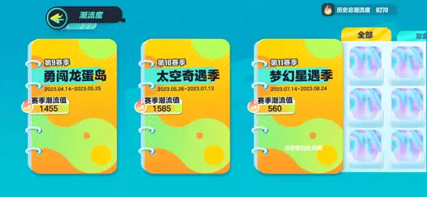 2、点击进入就可以查看在不同的赛季你获得的潮流度数值了