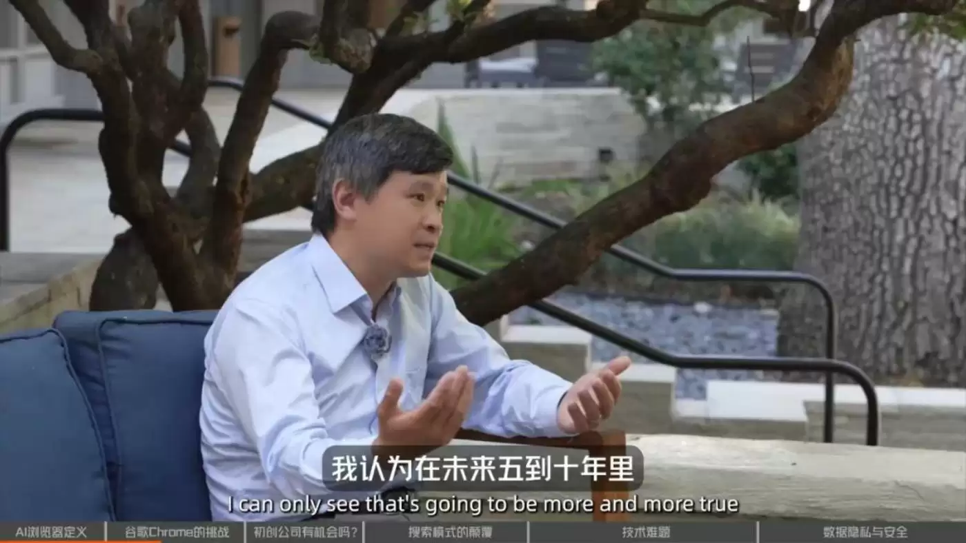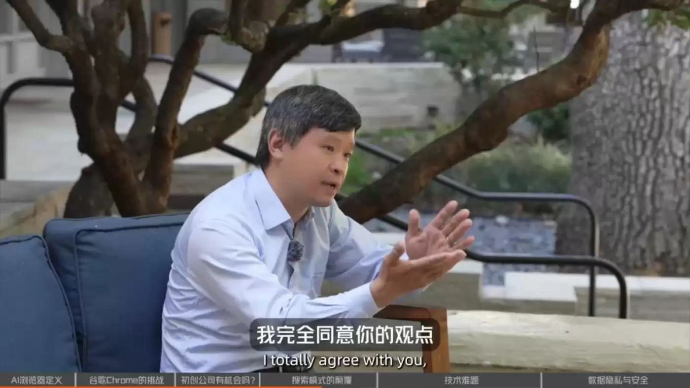 我认为,这个生态格局是完全开放的。在过去15年里,这是谷歌第一次两块核心“战略地产”都面临挑战。一块是搜索,另一块是浏览器。这是他们最重要的两块战略资产,我认为这两块都面临威胁,而机会正在出现。关键在于,像我们这样的人去思考,如何不只是做渐进式的小改进,而是做革命性的创新。