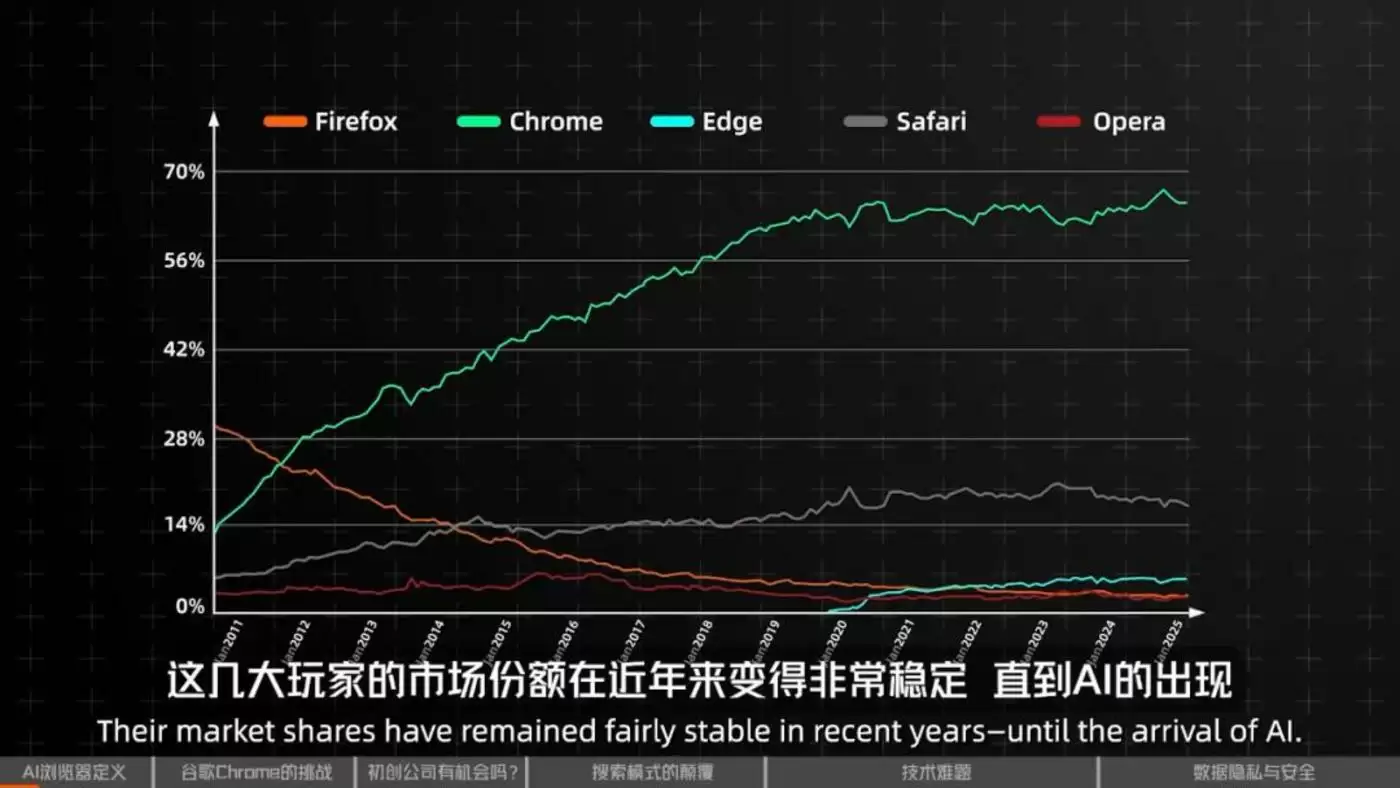你完全可以把Chromium当作初创引擎和基础模块,然后在用户界面、交互系统、安全优化、自动化优化等方面全部重新思考,构建出新的东西。所以我认为这个领域是完全开放的。