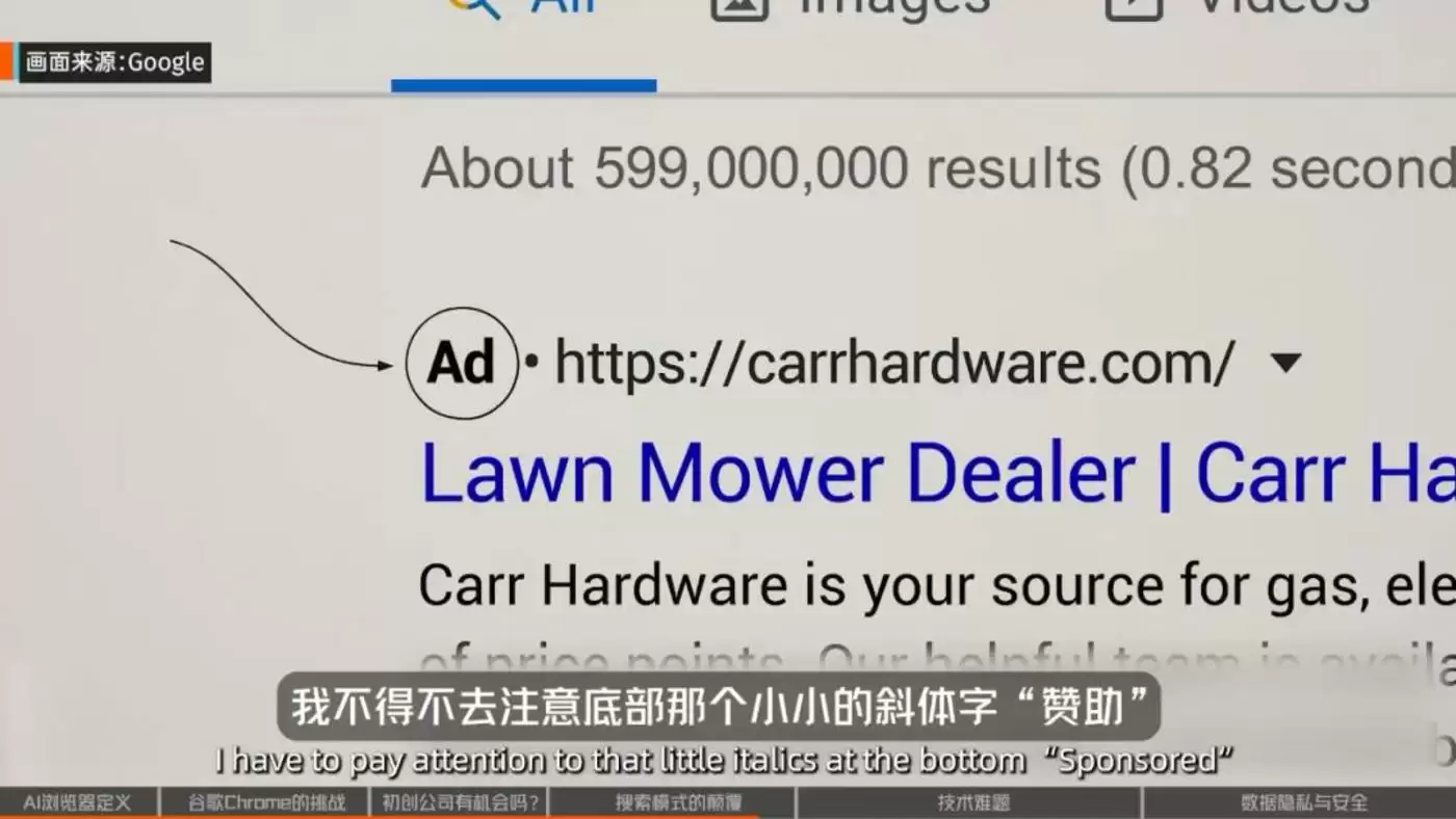 如今,你在Google上做搜索时,有多少次会思考“这是赞助结果还是自然结果?”我不得不去注意底部那个小小的斜体字“赞助”。如果我看到它是“赞助”就会直接划过,但不是每个人都能注意到这一点,毕竟它们被做得看起来就像是真正的搜索结果。
