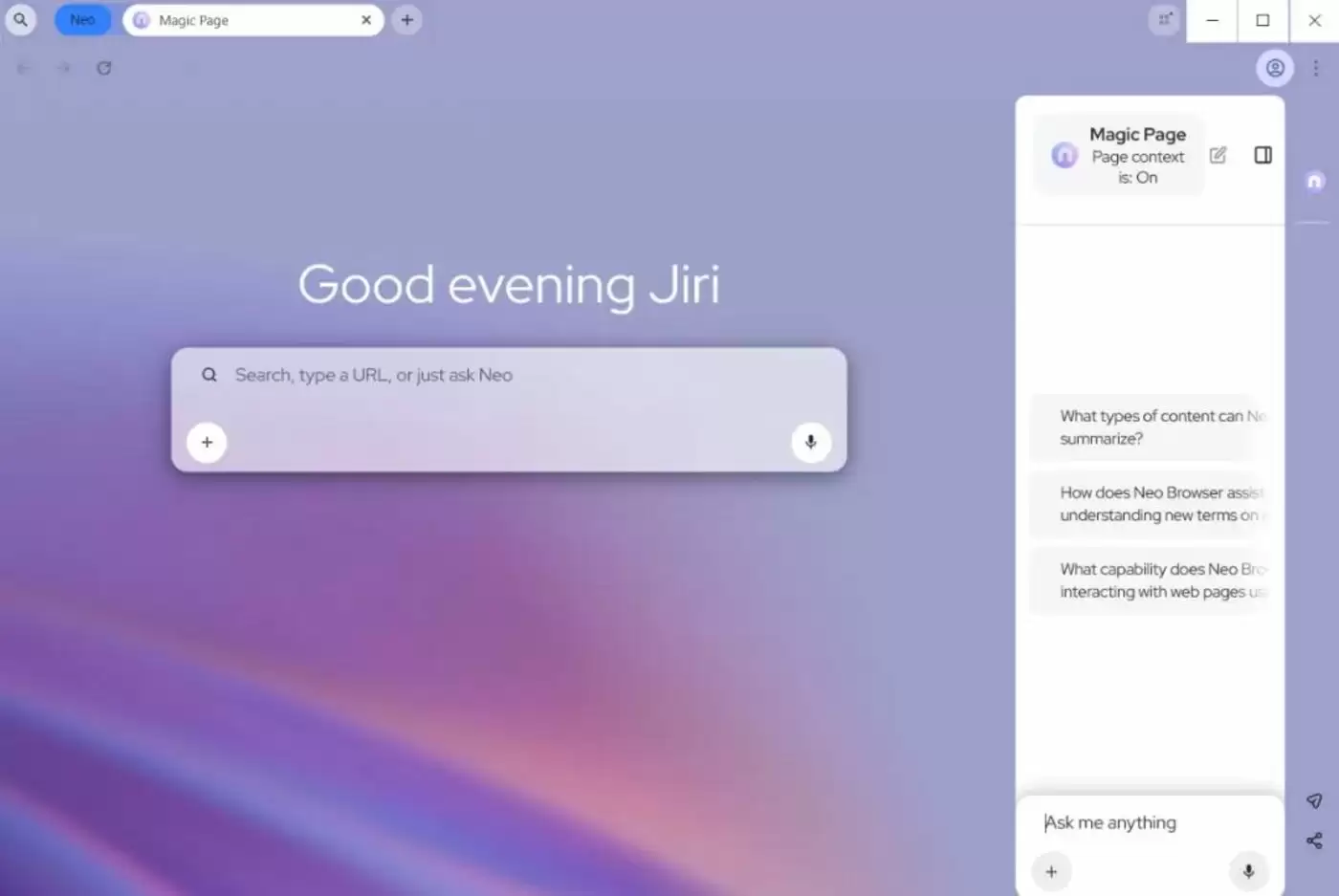 这就好像有一个“超级助手”坐在你身边,几乎与你一起浏览。它会帮你记忆内容,帮你提取信息。如果需要的话,它甚至能帮你访问50个不同的 ,并进行总结。所以我把它称为一个“个性化的、主动的智能体”,就像一个超级助手陪在你身边,这就是Neo浏览器正在努力实现的价值。