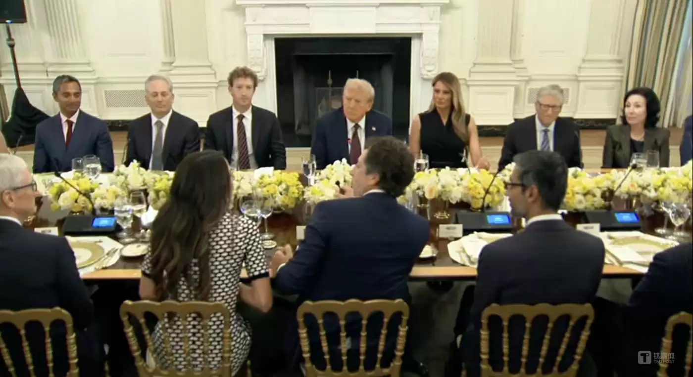 刚刚,美国总统特朗普在白宫组织了一场史上AI科技含量最高,亿万富豪聚集的晚宴。