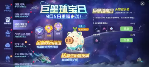 9月5日,登录游戏领取头饰、参与活动赢皮肤、组队语音并肩作战,每一个环节都充满惊喜。球宝日,让我们不分高低、不论输赢,一起沉浸在波拉哩的欢乐世界!