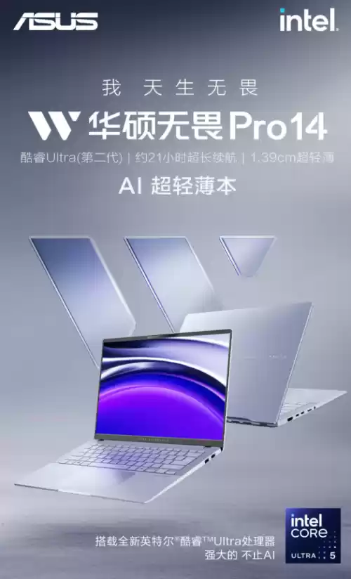要是你总在外面跑,对续航要求特别高,那华硕无畏 Pro14(搭载酷睿 Ultra 200V 处理器)绝对是最佳选择 —— 续航能飙到 21 小时,外出一天回宿舍还有电。