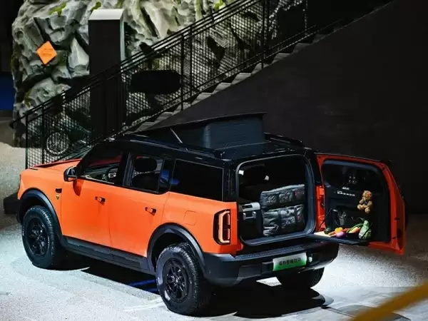 外观方面,新车延续了燃油版设计风格,贯穿式中网与两侧大灯组结合。不同的是中网搭配可发光的大尺寸“BRONCO”LOGO,另外大灯造型也不同。同时换装了更为宽厚的前包围设计,车顶还带了激光雷达装置。车身尺寸方面,增程版长宽高分别为5025*1960*1825(1815/1840)mm,轴距2950mm,纯电版长宽高分别为5025*1960*1815(1825)mm,轴距2950mm。
