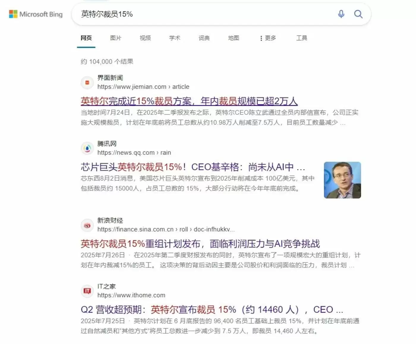 截至目前,英特尔裁员人数占员工总数的15%,其中一半以上的指标来自中层管理层,预计到今年结束,英特尔的员工数量会从10.89万缩减到7.5万左右——裁掉了一个英伟达。