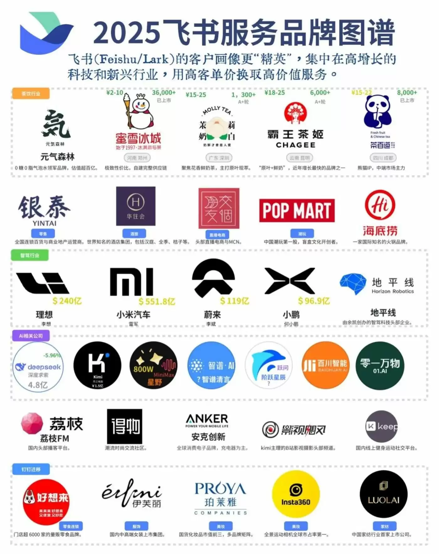 与钉钉不同,飞书专注于核心协作场景的深度优化。通过这种聚焦策略,飞书在用户体验方面做到更加精致和高效,由此吸引来了一批高质量客户。例如,小米、理想汽车、安克创新等知名企业都选择了飞书。