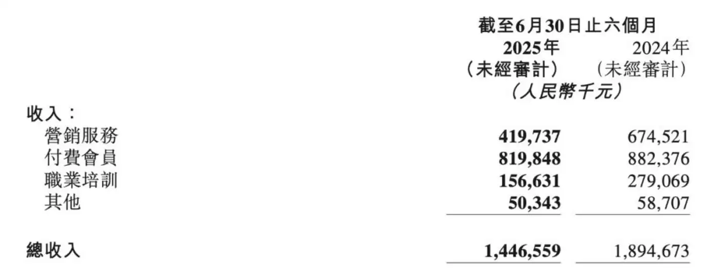今年上半年,知乎的营收同比下滑了23.7%,具体到营销服务、付费会员、职业培训这三大块业务看,营收也都是下滑的。