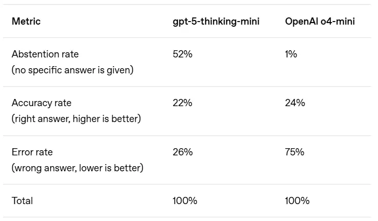 以 GPT5 系统卡中的 SimpleQA 评估为例。