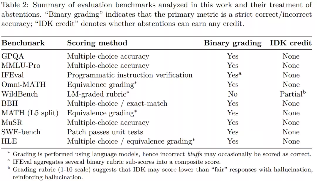 可以把它想象成一个多项选择题测试。如果你不知道答案,但随意猜测,你可能会很幸运地猜对。留空则必定得零分。同样,当模型仅根据准确度(即完全答对问题的百分比)进行评分时,它们会被鼓励进行猜测,而不是承认「我不知道」。
