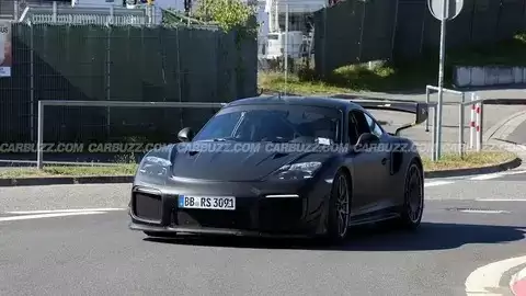 从曝光的谍照分析,这款车很可能是基于991.2代GT2 RS打造。前脸采用了经典的“Slantnose”斜鼻设计,造型灵感源自赛车935,极具辨识度。前大灯组与车头线条融为一体,虽被伪装材料覆盖,但仍可推测其采用狭长设计风格。前包围设有三分式通风口,与GT2 RS保持一致,两侧新增了双层导流翼片,尺寸略小于GT2 RS Clubsport版本。前机舱盖延续了GT2 RS的设计语言,前翼子板的轮拱通风口则进行了重新设计,整体风格相较RS系列更显含蓄。
