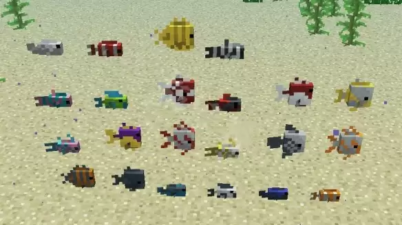 高度在Y=50至Y=64之间的一些海洋水体中会生成热带鱼。