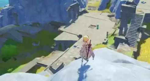 首先去建筑下面用石柱压着点亮圆盘,没有钟离可以用风主感应岩元素压点也一样。