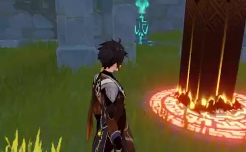 不信你离远一点就发现规律了,就是按照它的形状顺时针点亮岩石柱就可以了。