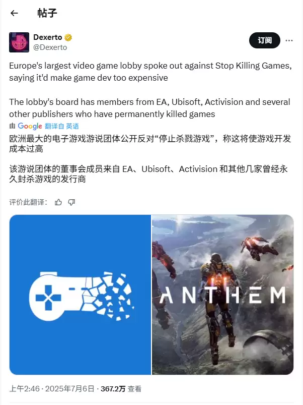 除了Scott,也有大量玩家及业内人士回应了这份行业声明,称其反而给运动带来了更多关注与正当性。尤其是在EA宣布彻底关闭《圣歌》后,该运动的核心议题再次被推至舆论风口——该游戏一旦服务器关闭,将彻底无法游玩,且玩家无法获得退款。部分玩家呼吁EA至少添加离线模式,但目前来看,这一可能性极低。