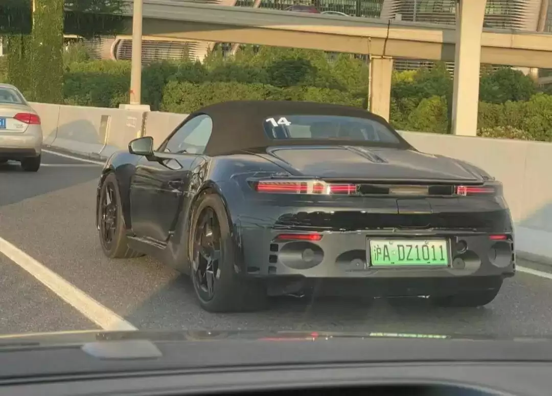 而在对电动车市场至关重要的中国,甚至已经出现过上了绿牌纯电 718 Boxster 测试车。谍照显示,这辆车的整体轮廓与 Cayman 基本一致,特别是车头的大灯样式,辨识度极高。敞篷版的车尾非常扁平,狭长的 LED 尾灯组十分干练。