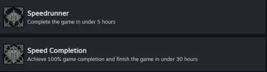 此外,游戏中还有一项名为“速通玩家”的成就,要求玩家在5小时内完成游戏主线,无需达成全收集。从5小时到30小时之间的巨大差距可以看出,丝之歌的大量内容主要集中在支线任务、收集要素和额外奖励上。