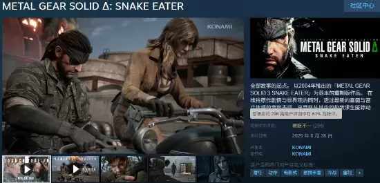 合金装备3:重制版发售已满一周,目前在Steam平台的简体中文评价中,好评率为61%,呈现出褒贬不一的态势。而整体好评率则达到了81%,与国内玩家的评分存在明显差距。