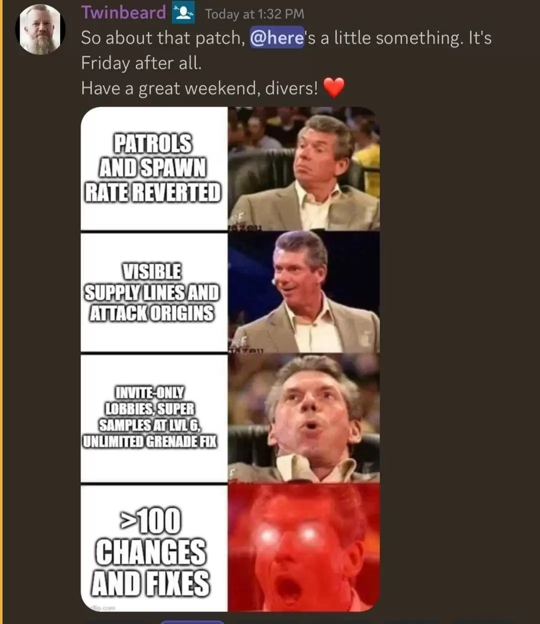 《地狱潜者2》的社区经理Twinbeard此前曾表示,未来将减缓更新节奏,并更加注重更新的质量。近日,他在Discord上透露,游戏的下一个补丁将带来超过100项的改动,并包含一系列Bug修复。