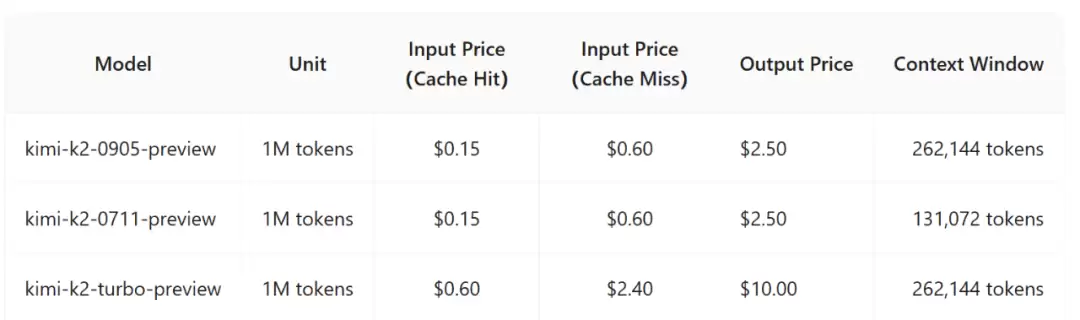 Kimi-K2-0905 此次还在 API 定价上打出了竞争性优势。