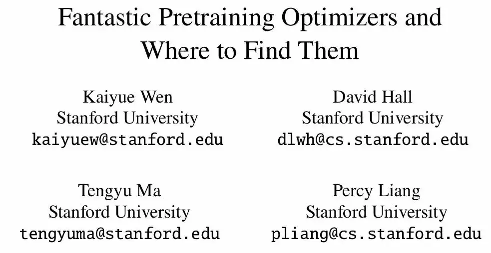 斯坦福大学 Percy Liang 团队的研究指出,尽管存在许多声称能提供显著加速(1.4 至 2 倍)的替代方案,AdamW 依然是预训练的稳健首选,但矩阵型方法在特定数据–模型比例下展现出明显优势。