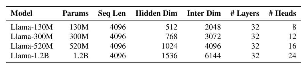 研究设计了一套严谨的方法论来评估这些优化器,该方法分为三个主要阶段。首先是通用设置阶段,明确了实验环境。研究使用了四种不同规模的 Transformer 模型,参数量从 130M 到 1.2B,序列长度均为 4096,并详细列举了各模型层数、隐藏维度等具体配置。