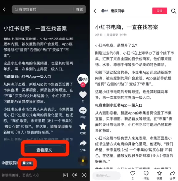 对此,你怎么看?如果你在抖音刷到一篇4000字的文章会停下来看吗?你看好这个长文功能吗?你有被内测到吗?还有什么新功能发现?欢迎评论区一起聊聊。