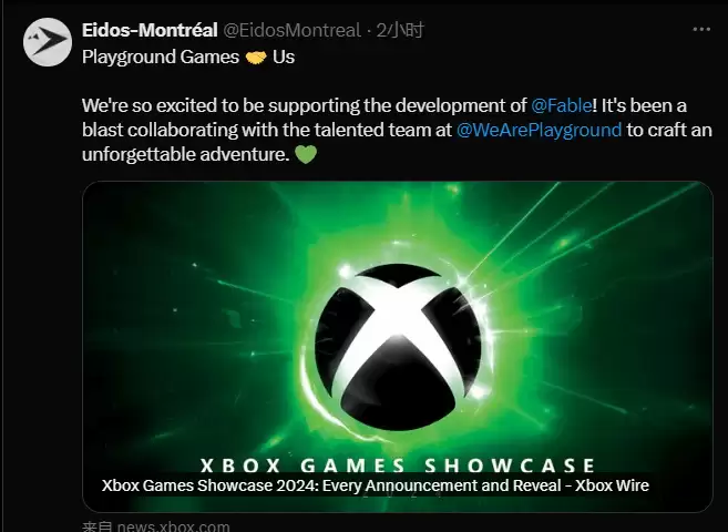 在今日凌晨的Xbox发布会上,动作冒险游戏《神鬼寓言4》公开了最新预告片。据消息人士透露,Eidos Montreal最新账号随后发文表示,该工作室正在协助开发商Playground Games共同制作这款新作。