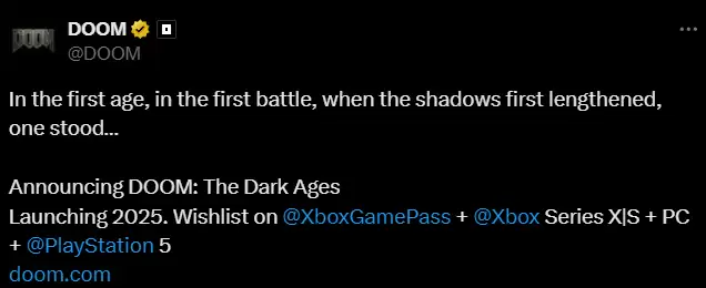 《毁灭战士:黑暗时代》最新确认即将推出,除Xbox Series X|S和PC平台外,该游戏还将登陆PlayStation 5。