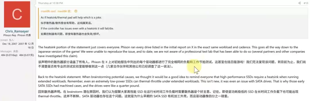 并且,群联为了确定不是自己的问题,还特意用日本老哥的同款硬盘,在同样的工作负载下进行了多轮测试,也是没能复现出问题。